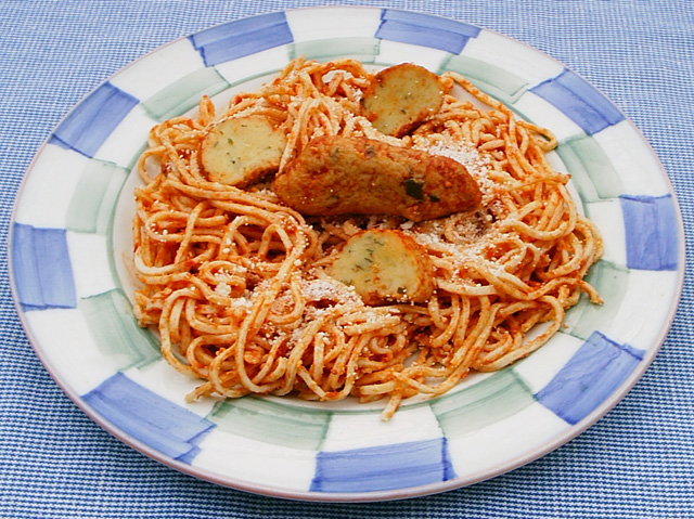 Notes Perhaps the whole world knew (except me!) that in Molise, prior to World War II, a dish of spaghetti was considered a special delicacy. Very few cooks could make spaghetti very well. It required a certain dexterity with the knife that few could master. Also, making spaghetti took a great deal of time. Back then there were no pasta makers so the strands were cut individually. While cooks rolled out their dough and folded their pastry sheets several times to make tagliatelle and sagnatelle, this was not done for spaghetti. For spaghetti each strand was cut individually. Most cooks did not end up with strands that were uniform in size (Those who could were revered!). In any case, the amount of dough made would depend on the amount of people at the dinner table. Cooks generally went with "1 egg" per person. So if one had 6 people for dinner a cook would use 6 eggs and whatever flour was "needed" to make a firm dough. Because eggs were expensive at that time one can well understand why this type of pasta was reserved for special occasions like Christmas, Easter, weddings and baptisms. Even those farmers who raised chickens avoided doing this type of pasta, as they often sold (or bartered) their eggs for other essentials. "Cacio e uova," cheese rolls, were also rare treats. Even though they were perceived as being a cheaper alternative to meat, they nonetheless cost a far amount to make. In upper middle class households "spaghetti with caio e uova" might have been served on Sundays, but in poorer households the dish would have only been made for Easter Sunday! Nowadays most Italians associate spaghetti with everyday meals. I know I did. But that was a big mistake! Oddly enough, even now that I know better, I find it hard to believe that spaghetti (prior to World War II) ranked as high on the pasta hierarchy as lasagna and cannelloni (Silly me!). Of course, some cooks did make spaghetti dough without eggs, but not many (Spaghetti were far too labour-intensive to be worth the effort). In fact, in most poorer households even egg-free pasta was only served 2 times a week (So it was at my maternal grandmother's house!). The rest of the week cooks served pizza con figiole, pizza con rapini, and pizza with something or other. Of course, the pizza that was then served was not the now famous Italian American wheat-based tomato pizza but rather corn pizza. Actually, it wasn't a pizza at all, or even a corn bread, it was a simple mixture of cornmeal and water that was cooked over a slow fire. The resulting corn mixture did not have much taste. I suppose it played the same role as that of unflavored Chinese white rice, meaning that the flavor of the food did not depend on it. The flavor came from what one topped the corn pizza with. Anything and everything ended up on the corn pizza -- from tomato sauce to vegetable stews. Because the vegetables grown in the countryside were fresh and wholesome, I suppose, those who lived on a farm ate well enough back then, though, of course, my mother would disagree. She was (and is) not fond of corn pizza. Actually, neither am I. On the other hand home-made spaghetti with cacio e uova is very good. Thankfully, nowadays, one does not have to wait for Easter Sunday to enjoy it..... Photo: Mary Melfi. |