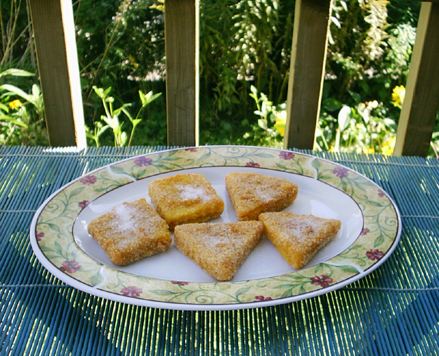 Directions "Put one pinch of salt and one tablespoon of sugar into a cup of milk, and put it on to boil. As soon as it boils pour in, little by little, one-half scant cup of fine Indian meal, stirring constantly with a wooden spoon. Allow it to boil gently for twenty minutes. Take it off the stove, add one level tablespoon of butter and the yolk of one egg and a little grated lemon-peel. Beat up up well to mix the egg and butter. Then turn the mixture onto the bread-board, which has been dampened; spread it out to the thickness of a finger. Allow it to cool, then cut into squares of diamonds or little rounds, dip these into egg and then into the bread crumbs, and fry them in boiling lard, a few at a time. Sprinkle with sugar, and serve hot." Notes This recipe was taken from "Simple Italian Cookery" written by Antonia Isola (pen name for Mabel Earl McGinnis). It was published in the United States by Harper and Brothers in 1912. It is believed to be the first American cookbook that contains Italian recipes. For the complete copyright-free cookbook see www.archive.org. A variety of recipes from this cookbook can also be found on this website.... Photo: Mary Melfi. |