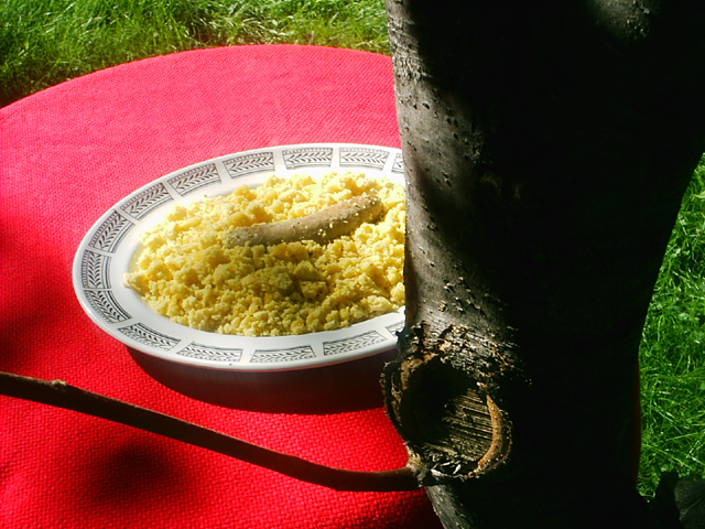 "The polenta is a very popular dish in Northern Italy and can be prepared in various ways. Always, however, it is better to serve with the addition of sausages, or with birds or tomato paste. The polenta is practically corn-meal and it is made with the so-called farina gialla or yellow