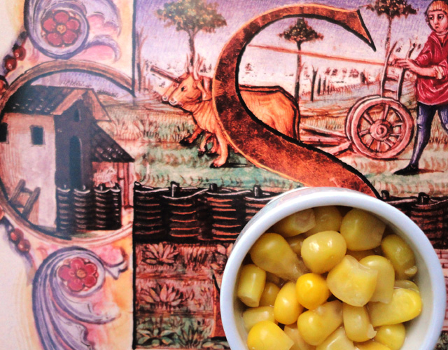 Directions Prepare a rather soft polenta with corn flour, spread it on a board, in a thickness of 1/2 inch, and cut it into almond-like pieces.
