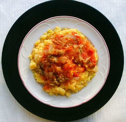 Prior to World War II polenta was viewed as the food of the poorest of the poor, and as such it had the least amount of culinary appeal. Most people cooked it because there was little else to cook, and so they made do. Few individuals admitted to liking polenta. Generally speaking, foods that used corn as their base were not well-liked. Even though this was the case, the majority of subsistence farmers did grow corn on their farms (as well as wheat, of course). Possibly, farmers grew corn because they were afraid they might need a back-up, in case their wheat didn't do well etc.... In any case, most poorer households in Southern Italy ate polenta a few times a week. Often, the topping varied. Most people preferred to eat polenta with a red sauce (a tomato-based one). However, fresh tomatoes were not always available, so in the winter and early spring, polenta was served with a "white" sauce -- olive oil and garlic. Few (if any) liked this combination, but they ate it 'cause they had no choice. Nowadays, Italian cooks are rediscovering polenta and quite a few claim to like it. Why I can't say, but so it is. Photo: Mary Melfi. |