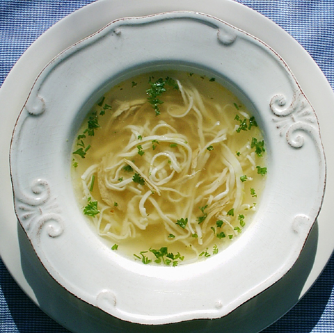 Notes Nowadays "tagliarini" is often described as an egg-based pasta that is paper-thin and about 12 inches long. It seems that prior to World War II Molisans living in the town of Casacalenda used the word to describe paper thin noodles that were about 6 inches long (according to my mother). At that time "sagnetelle" looked very similar to "tagliarini," the one difference was that "tagliarini" contained eggs and "sagnetelle" did not (again, according to my mother). In any case, almost everyone who lived in Southern Italy in the 1930s (including my mother) will vouch that this style of soup was only served on very special occasions. As there were no ready-made chicken stock bases available at that time, cooks would have needed to make their stock from scratch, and, that, of course, would have been an expensive proposition.... Photo: Mary Melfi. |