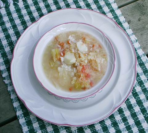 Directions "Minestrone is a favorite dish in Lombardy where vegetables are plentiful. Boil all sorts of vegetables in stock, and add bits of bacon, ham, onions braised in butter, chopped parsley, a clove of garlic with two cuts, and rice or macaroni. Put in those vegetables first which require most cooking, and do not make the broth too thin. Leave the garlic in for a quarter of an hour only." Notes This recipe was first published in "The Cook's Decameron: a study in taste, containing over two hundred recipes for Italian dishes," written by Mrs. W.G. Waters and published by William Heineman (1920). For the entire copyright-free cookbook see www.archive.org.... P.S. Of all the recipes for minestrone published at the turn of the last century this is possibly the most vague. Still, it describes the soup quite well. I did not do this version of minestrone but I have done quite a few others, and they're all quite pleasant to eat. Photo and notes: Mary Melfi. |