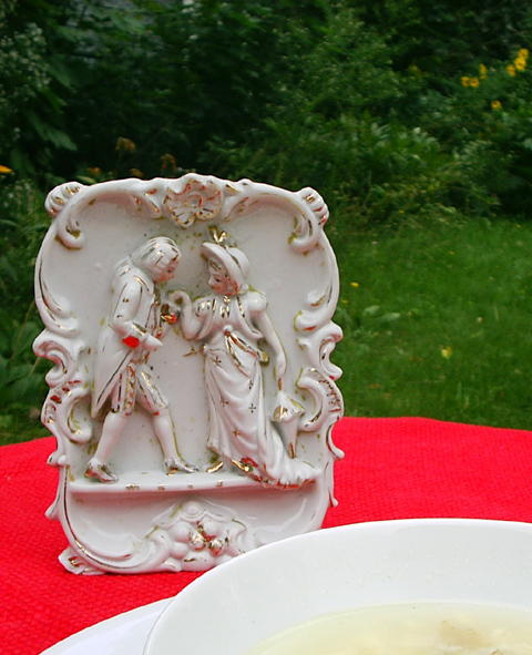 Directions "Put a tablespoonful of ground rice into a saucepan and gradually add half a pint of milk, boil it gently for twelve minutes in a bainmarie, but stir the whole time, as to get it very smooth. Just before serving add an ounce of butter, pass it through a sieve, and mix it with good fowl stock." Notes This recipe was taken from "The Cook's Decameron: a Study in Taste, containing over two hundred recipes for Italian dishes," by Mrs. W.G. Waters. It was published by William Heineman in 1920. For the entire copyright-free cookbook see www.archive.org. A variety of recipes from this cookbook can also be found on this website.... Photo: Mary Melfi. |