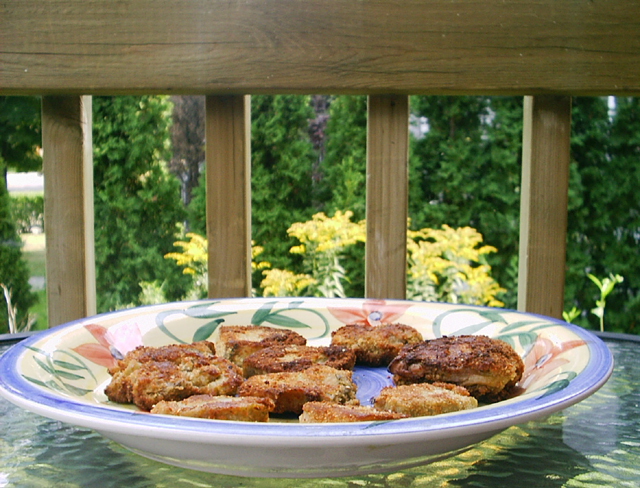 Directions "Peel a fruit and cut it into round slices about half an inch thick, sprinkle with one teaspoonful of salt and half a teaspoonful of pepper, dip the slices into beaten-up egg and