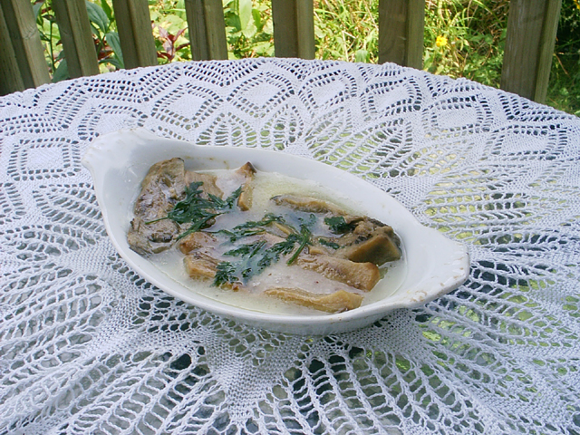 "Put two ounces of flour into one quart of water, with one and a half ounces of butter, and a little salt and pepper. Cook for twenty-minutes, stirring well, then strain into a covered bowl and put into a Bain-marie. Just before serving boil again, take off the fires, add twelve ounces of butter cut into pieces, and the juice of one fine lemon. The heat of the sauce must melt the butter as it must not be put on the fire again. If the sauce is too thick mix in half a wineglassful of hot water."
