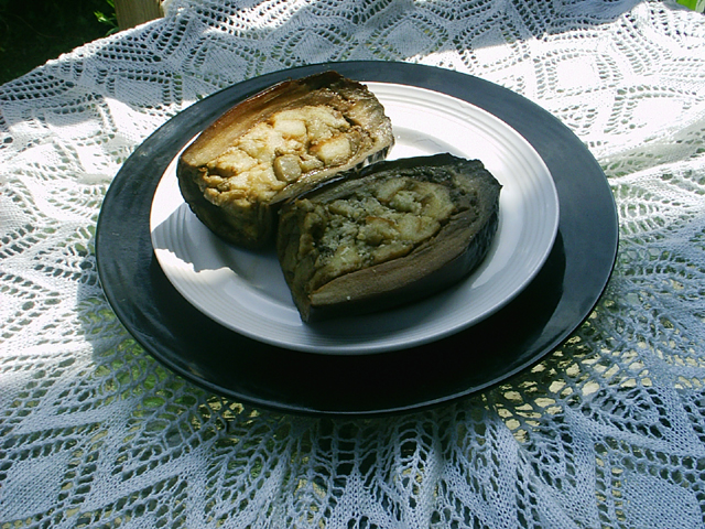 Directions "Boil two (or more) of the fruits for twenty or thirty minutes (until tender). Then cut them in two lengthwise and take out the pulp, being careful not to break the skin. Mash the pulp up with some butter, salt, and pepper, and replace it in the skins. Sprinkle with bread-crumbs and bits of fresh butter, and put it in the oven to brown."
