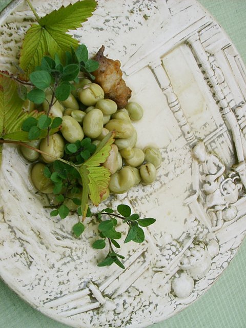 Directions "Take quite young shelled broad beans and stew them in a sauce-pan with a little browned onion, some ham, butter, sweet herbs, and flour ; moisten well with broth, add a quarter of a pint of sweet white wine, and three spoonfuls
