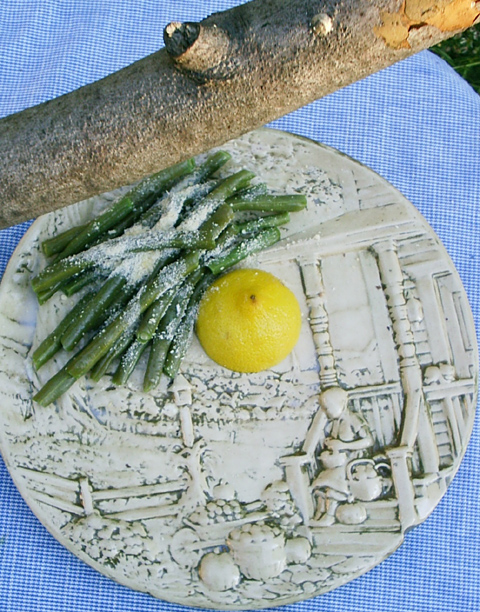 Directions "Boil one quart of French beans slowly until nearly tender; then dry, and put them to cook in fresh butter. Mix a teacupful of cream, an egg, some grated cheese, and some allspice well together in a sauce-pan, then add some lemon