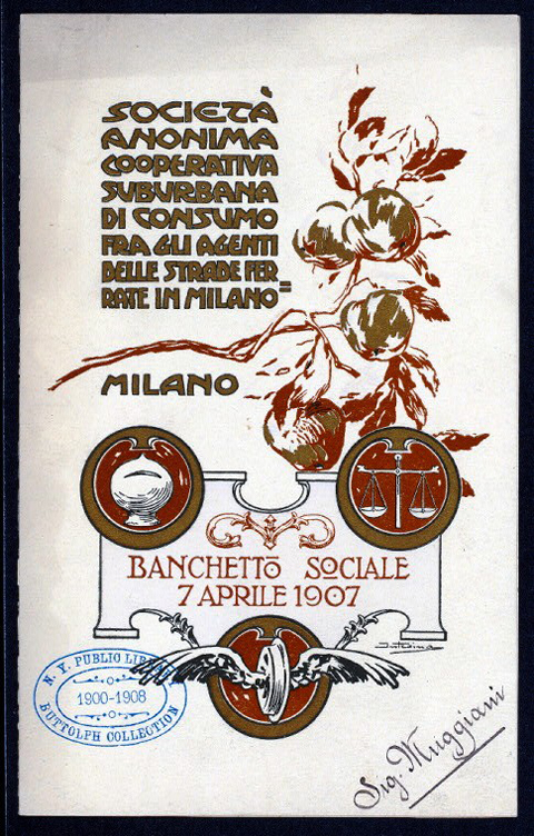 Notes The recipe in this entry comes from "Italian Cooking" by Dorothy Daly was published by Spring Books in London, England. For the complete copyright-free text see www.archive.org. Image: 1907 Italian Menu, from the New York Public Digital Library. |