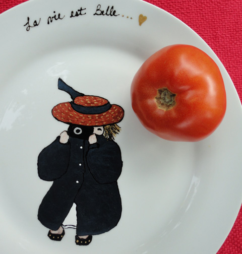Directions Cut off the stem-tops of six large tomatoes; remove the cores and seeds, and fill with the following mixture: two ounces of breadcrumbs soaked in vinegar and strained, one ounce of grated cheese, two hard-boiled eggs finely chopped, a dessert-spoonful of basil well chopped, pepper and salt to taste.