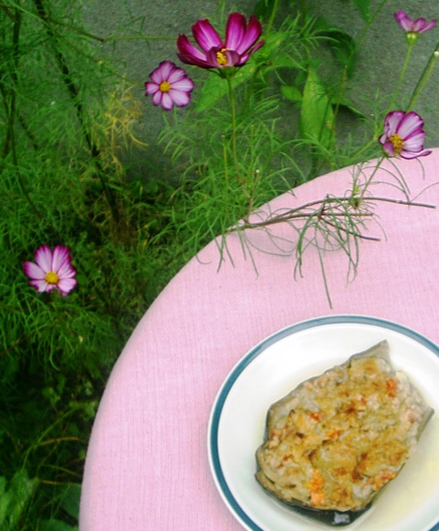 9. Fill the eggplant shells with the mixture.