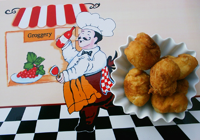 Pettole Lucane (Basilicata sweet fritters, with yeast; flavored with anise liqueur; brushed with honey)