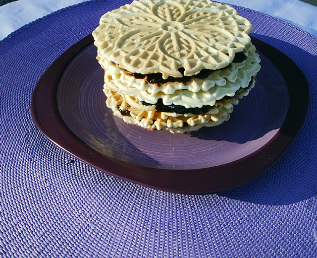 Prior to World War II wine grape marmalade (or jam) pizzelle sandwiches were only made for very special events like weddings and baptisms. However, as soon as those from Molise and from other Southern areas in Italy immigrated to North America, they started to make their favorite cookies for any family gathering (It didn't even have to be a big party, any excuse was a good excuse to bake cookies!). Photo: by the contributor. |