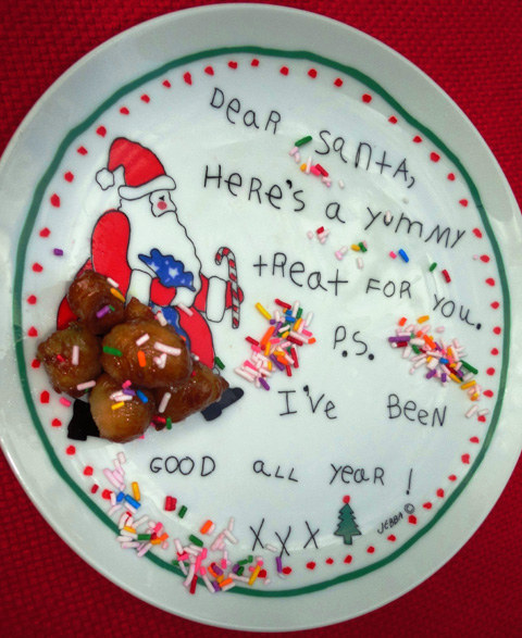 From Wikipedia: The struffoli are typical sweet Christmas of Neapolitan cuisine. The cake is composed of numerous small balls of dough (made with flour, eggs, butter, sugar and flavorings) not more than 5-10 mm in diameter, fried in oil or in lard and (after having left them to cool), wrapped in honey and placed in a warm serving dish giving them, in general, a donut shape, decorate it, ultimately, the composition with bits of citrus and other fruit peel, sugar and bits of confetti colored (called diavolillis, devils or "minulicchi "). A variation can be identified in the struffolis baked, and that is that the balls of dough are baked instead of fried, they are lighter and just as tasty.
