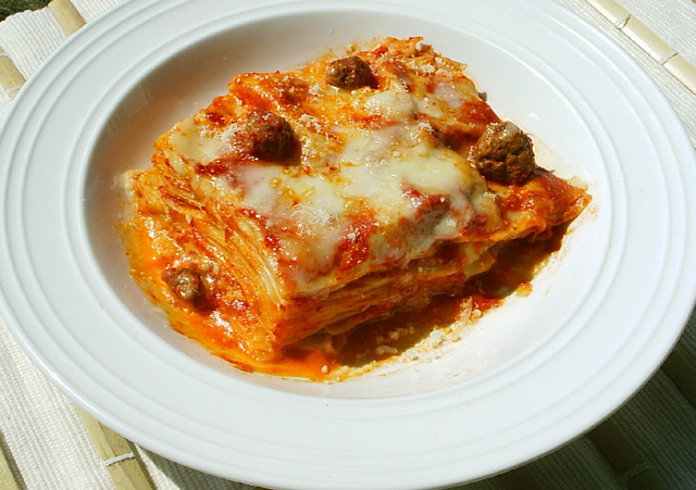 Apparently prior to World War II "lasagna in red sauce" was not served in Molise. Rather, "lasagne in brodo" was the dish that was made for very special events such as weddings and baptisms. However, when those from Molise immigrated to North America "lasagne in red sauce" became extremely popular. Up to the 1970s hostesses did make "lasagne in brodo" for Christmas or Easter, but by the 1980s "lasagne in red sauce" became The dish to serve on major holidays.... Photo: by the contributor. |