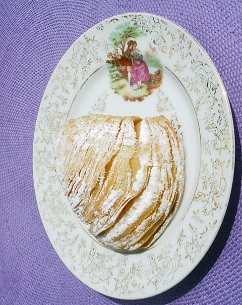 Wikipedia suggests that "sfogliatelle" (pronounced sofol-j'ah-TEL-e) originated in Naples and "are thought to have been perfected in convents, because their making is so time-consuming." However, some food historians believe sfogliatelli may have had its origins in the Middle East. Apparently, the phyllo dough, often called "millefeulle" in France and "millefoglie'" ("a thousand leaves") in Italy was invented by the Arabs and picked up by Europeans. The traditional stofgliatelle pastries are made with layers of phyllo dough which use rendered pork fat though nowadays some pastry chefs prefer to use butter. The pastries come shaped like shells or cones and are generally filled with orange-flavored ricotta. Stofgliatelle: pastries are possibly Italy's most famous dolce. In North America "stogliatelle" and sfogliatelle ricce" generally refer to one and the same pastry; however, in Italy the word "ricce" is added to "sfogliatelle" to distinquish it from newer and cheaper versions of sfogliatelle which are made with shortcrust pastry dough rather than phyllo dough. The larger versions of sofogliatelle ricce are sold in shops as "lobster tails" because they resemble their shape.... To-die-for "sfogliatelle ricce" are generally available in North American Italian pastry shops though they are rather expensive; recently sfogliatelle ricce can also be bought frozen in big "box-store" though obviously they're not as tasty as the fresh ones. In the 1950s sfogliatelle were served only at weddings, baptisms and other major life celebrations. Nowadays, they can be part of any Sunday dinner. Very few (if any) North Americans make their own sfogliatelle. This is one pastry best left to professionals. However, there are many websites (e.g. www.epicurious.com and www.recipezaar.com) that do have recipes and for the cook who likes a challenge this will definitely provide it. Photo of store-bought stogliatelle ricce: by the contributor. |