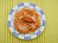Spaghetti con Cacio e Uova (Spaghetti with Cheese Rolls)
