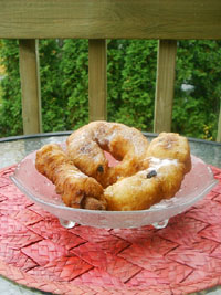 Crispelli di Natale (Christmas sweet fritters with raisins, topped with table sugar)
