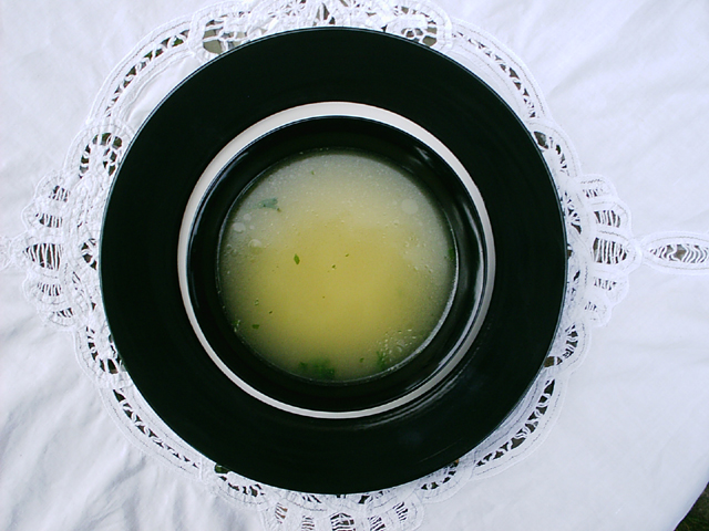 Prior to World War II it was the custom in Molise to prepare chicken soup on the day of a funeral. Generally, the soup was prepared by close relatives of the bereaved family. However, as chicken meat was relatively expensive at that time, not everyone could afford to make it and offer it to their loved ones. According to my mother those who could not afford to make chicken soup with flaked chicken breast meat (considered the best part of the chicken), added beaten egg to the broth. The poorest of the poor would offer the bereaved any food they had on hand -- including "pasta e fagiole." It was assumed that the family that experienced a death of a loved one should be given food for obvious reasons -- firstly, because they understood that if a family had to take care of a funeral they would not have the time or energy to cook, and secondly, it was a way to show their love and support in a time of sorrow. For recipes see Italy Revisited/Recipes/ "Italian Soups".... Photo: Mary Melfi. |