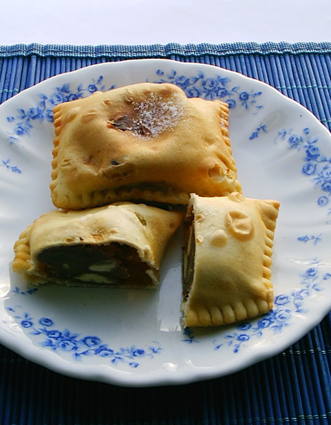 Notes The fritters in this entry were made by Pauline Fresco, using her mother's recipe....This style of fritter is known by different names such as: calcione, calcioni, caveciune, caveciuni, cauciune, cauciuni, cauciun', calciume, calciumi, calciune, calciuni, calciuni, caucione, caucioni, caucine, caucini, cavazune, cavazuni and who knows what else? However, the official spelling for this style of Molisan treat on the world-wide web is (Well, seems to be): "Calcione" (singular form) and "calcioni" (plural form). In other parts of Italy this style of fritter is sometimes known as "ravioli di San Giuseppe" as well as "ravioli dolce," "sweet ravioli." N.B. In present-day Italy, "Calcioni Molisani" often refers to unsweetened ricotta-stuffed fritters rather than chickpea-stuffed sweet fritters. However, prior to World War II, most people living in the Molisan countryside thought of "calconi" as sweet fritters made with chickpeas. Those Italians (and their children) who immigrated to North America in the 1950s still think of "calcioni" as pastries stuffed with chickpeas rather than with ricotta and/or chestnuts. |