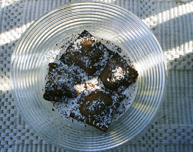 Chocolate ravioli are becoming incredibly popular. As I love to bake, I couldn't resist trying to come up with my own variation on this dessert. I can't say I particularly recommend this version, but for those who like chocolate-flavored sweet ravioli it might be worth a try. I have no idea if chocolate ravioli were popular in Northern Italy prior to World War II. All I know for sure is that they are popular in this day and age -- both in Northern Italy and in the South as well. In any case there are dozens of variations for this now classic dish on the world-wide web. Some cooks fry the ravioli, some boil them and others bake them (Frying might actually improve the flavor!). Some cooks use cream cheese, others ricotta. Some cooks use cocoa powder, others dark semi-sweet chocolate. Some cooks add orange or lemon zest, others vanilla. Some add nuts, others do not. And the list goes on. In any case, if one bakes "ravioli" as I did for this recipe, the crust will be a bit hard, so in order to have a nice presentation, the sweet ravioli will have to be served with cream. Obviously, strawberries or other berries can also be added. Even though I found the chocolate ravioli to be O.K. tasting, I can't say I would recommend this personalized version of this dessert. Nonetheless, those I gave the chocolate ravioli to raved about it for reasons unclear. Photo: Mary Melfi. |
