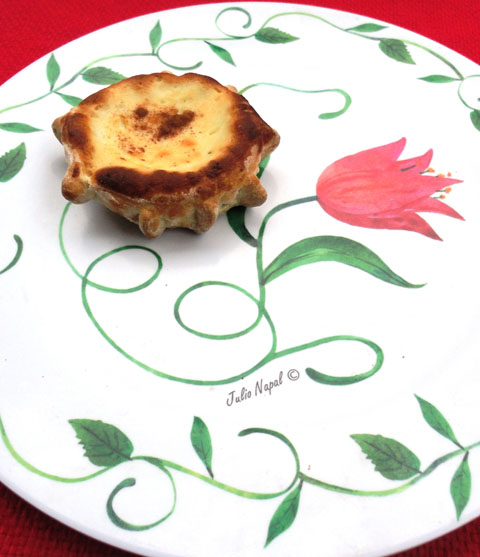 This is a traditional Sicilian recipe. This tart has an unusual shape, but it's lovely and on top of that, it's quite easy to form. Unfortunately, the recipe calls for a yeast dough which can be annoying for those who don't like working with fresh yeast (or any other kind of yeast). Also the recipe calls for a very stiff dough. Why I don't know, all I do know that it is very difficult to make a dough from 4 cups flour to 1 cup water (The original recipe calls for even less water). I could never do it even with the help of a Kitchen Aid. Actually, I no longer try. I buy fresh pizza dough from a good Italian pastry shop (It's quite cheap -- $2.50) and then proceed from there. Fresh pizza dough can easily be altered to suit various types of dessert recipes. In fact, one could simply use the pizza dough as is, and then add lemon zest to the ricotta mixture, and that too will result in a nice enough ricotta-based dessert. There are many ways to simplify a recipe (I always look for them, I don't like complicated recipes). I suspect this recipe can also be done with a pasta frolla pastry dough without doing any harm. Using an Italian-style pastry dough would not only simplify the process, it would also speed it up as well. That said, traditional recipes do take time, and if one has it, then one should make an effort to do them as they're supposed to be done, I guess. Comments and photo: Mary Melfi. |
