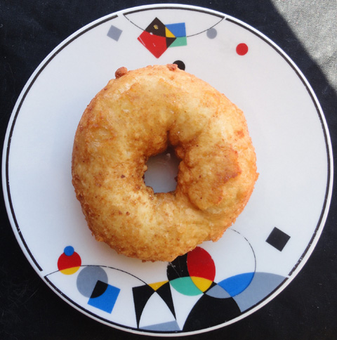 Notes The following text comes from the Italian Wikipedia (Google Machine translation): "Christmas dessert similar to sweet ravioli, the dough is made with flour, olive oil and white wine. The filling is made from chickpeas, cocoa, cooked must, cinnamon and orange peel; the sweet is fried, and in the area of Teramo Montorio al Vomano the filling is made from chestnut paste, chopped almonds, dark chocolate, lemon zest, rum, honey, cinnamon; in Ortona Chieti instead the filling is made from a mixture of black Montepulciano grape jam, almonds and toasted walnuts and ground cinnamon and cocoa ..... " Original Italian text: "Cagionetti, calgionetti, caggiunitt', caggionetti, caviciunette: Dolce natalizio simile ad un raviolo, con impasto di farina, olio e vino bianco. Il ripieno è composto da ceci, cacao, mosto cotto, cannella e bucce di arancio che viene fritto; nella zona di Teramo e di Montorio al Vomano il ripieno è composto da pasta di castagne, mandorle tritate, cioccolata fondente, buccia di limone, rum, miele, cannella; ad Ortona e Chieti invece il ripieno è composto da un impasto di marmellata di uva nera di Montepulciano, mandorle e noci tostate e macinate, cannella e cacao....." N.B. tried this recipe and found it a lot harder to do than the usual crescent-shaped Abruzzesi Christmas fritter. First of all, it's hard to seal thin strips of dough that has a filling on them, and second of all, turning those stuffed strips of dough into attractive, donut-shaped fritters requires a lot of patience and a bit of talent. It wouldn't surprise me if the shape of this sweet fritter is specific to a particular area (possibly Teramo, Abruzzo). Those who grew up with this style of fritter in their homes will undoubtedly want to continue the tradition, but anyone else might consider twice before doing it. The filling is pleasant enough, but shaping it, takes a great deal of effort. Obviously, the dough and filling used to make cagionetti, can be used to make any kind of sweet ravioli -- round-shaped, horseshoe-shaped and rectangular-shaped. Comments and photo: Mary Melfi. |