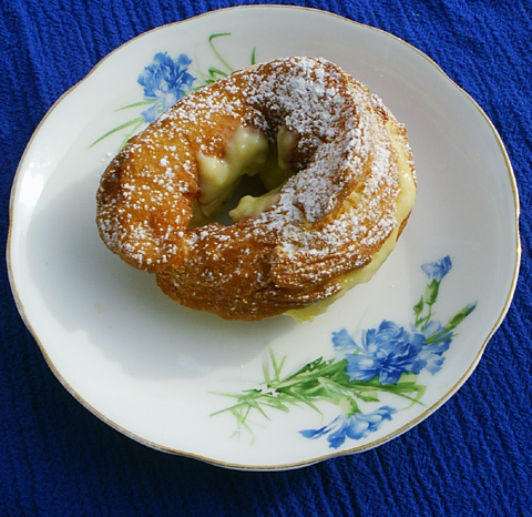 Apparently zeppole are a touch bigger than zeppoline. In Sorrento, Campania the zeppole are presented in an oval shape. The zeppole made from the dough from this recipe can be filled with chocolate pastry cream, whipped cream, sugared ricotta or any other type of garnish one likes. The dough, which is relatively soft, can also be put through a pastry bag and be presented with swirled patterns. The dough can also be baked, instead of fried...... Photo: Mary Melfi. |
