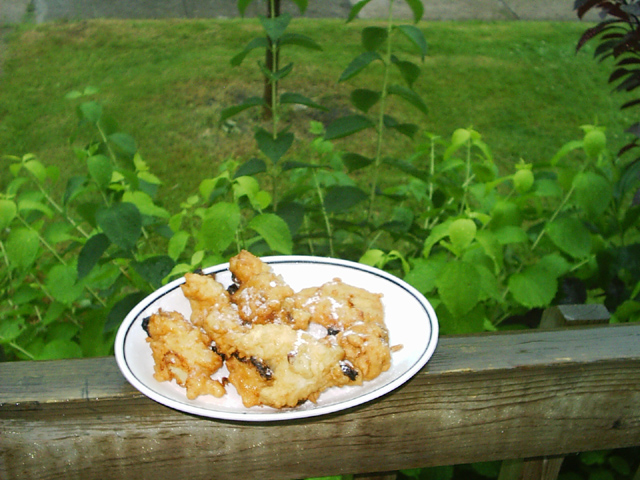 Directions "To half a pound of chestnut flour, add sufficient water to make a thick past; add a pinch of salt, a few seedless raisins, and a few chopped pistachio nuts; mix together well and drop in spoonfuls into deep hot oil, cooking till golden brown. Brain and serve hot, sprinkled with Castor sugar." Notes This recipe was taken from "Italian Cooking" by Dorothy Daly. It was published by Spring Books in Great Britain. For the complete copyright-free cookbook see www.archive.org..... Photo: Mary Melfi. |