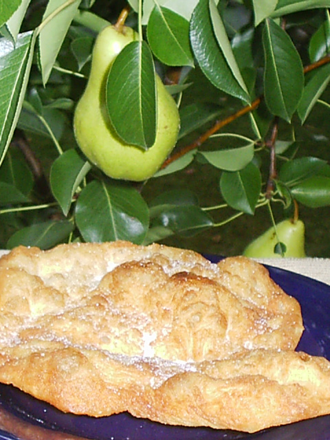 Notes According to my aunt, Zia Rosina, when she was growing up in Italy in the 1930s surplus (or left-over) pizza dough was often fried and sugar was sprinkled over it. The treat was often offered to children. In some areas of Southern Italy this style of pizza was served during the Christmas holidays. Nowadays everyone assumes pizza can only be baked, but in fact, it can be fried.... One more thing.... A visitor to this website whose family also comes from Casacalenda, noted that "pizza fritta" was often sprinkled with both sugar and cinnamon.... Photo: Mary Melfi. |