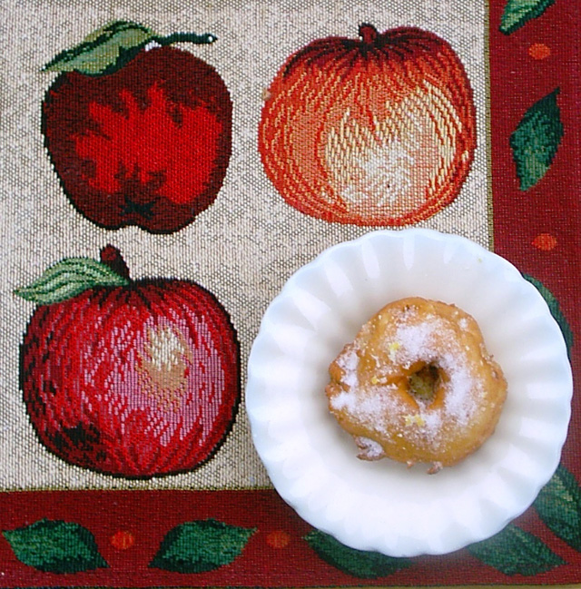 Notes This traditional recipe from northern Italy is not as easy as it looks. Some of the apple slices will break (even before they're cooked) and as for the batter, no matter how thick and smooth it is, it might not stick to the apple slices. You have to manually load the batter to the apple slices. To get the apple slices to look like a donut (with a hole in the center) is no easy feat. The best way to do it is to core the apple, so that it has a fairly large hole in the center. And then while the apple is frying you can pass the opposite end of a fork in the hole, but you can't do it too early (the batter will simply return to the hole) and you can't do it too late 'cause then it won't work, so you can only do it mid-way. If the hole does get clogged up, it doesn't matter all that much (The taste will be the same). The apple fritters take two to three to four minutes to cook -- if they're undercooked they're no good, and if they're overcooked they're no good either. If the dough is undercooked, it tastes awful, if the apple is overcooked, it tastes mushy and disgusting. However, done right, these Italian-style apple fritters are very tasty (Would even go so far as to say "delicious"). In the fall when apples are abundant and cheap, this is a wonderful recipe to try. In Italy, prior to World War II, only those foods that were in season, were made use of. Also, back then, nothing was wasted. So the oil that was used to fry fritters or whatever else was, of course, reused. This can still be done today. All you have to do is wait for the oil to cool and then use a strainer to get rid of the impurities. That done, the oil can be placed in a container and put in the freezer. Prior to World War II most Italians used olive oil to fry foods. Nowadays, they use all-purpose vegetable oil; some switched because they preferred the vegetable oil's "lighter" taste, others switched because the cost of olive oil skyrocketed. In any case, most professional cooks recommend peanut oil or sunflower oil for deep frying. Both peanut and sunflower oil have less of an "oily" aftertaste (Unfortunately, these cooking oils are more expensive). Obviously, there are dozens of variations on this traditional apple fritter recipe. Some include vanilla, others don't. Some include nutmeg, others don't. Some dust the apple fritters with confections' sugar (or icing sugar) while others call for regular white sugar. Some recipes recommend dusting the fritters with sugared cinnamon, others don't. Personally, I preferred the fritters to be sprinkled with lemon-flavored sugar, but then that could be just me. Photo: Mary Melfi. |