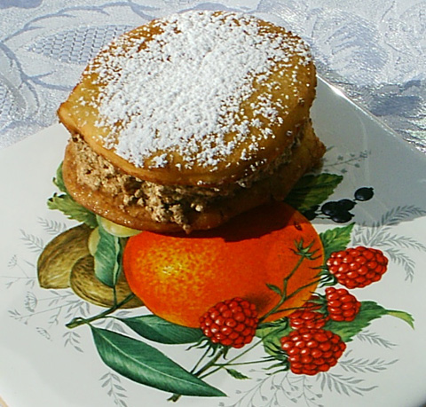 When cold, fill each disc with the cream filling, then place another disc on top and sprinkle with powdered sugar.