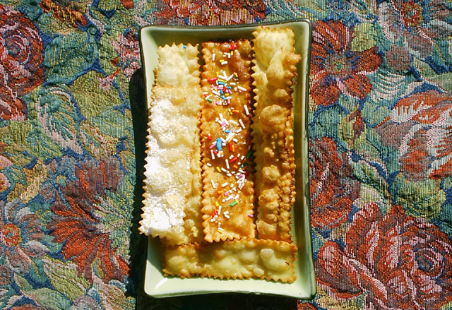 Thin rectangular pastry strips are the prettiest Carnival fritters, but they certainly are the easiest to make. Photo: by the contributor. |