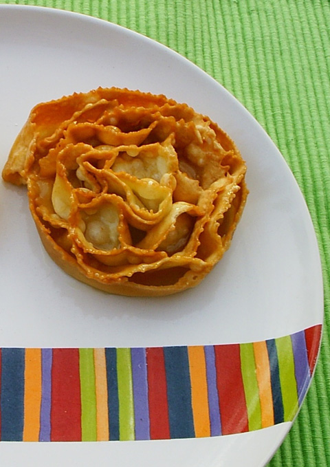 12. When all the the rose wheels are completed, fry them in hot vegetable oil until they are golden (Avoid browning them as they will taste burnt).
