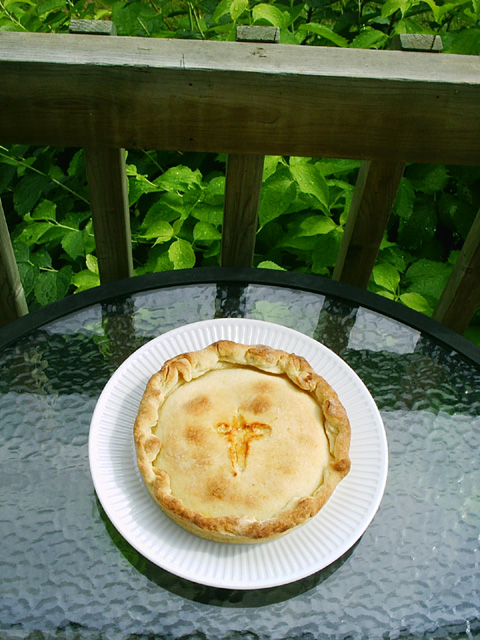 o Cut a small cross into the top pie crust.