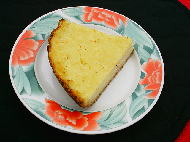 Sieve ricotta twice, add sugar, egg yolks, flour, nutmeg, butter, lemon rind and juice; mix well, and fold in egg whites and cream.