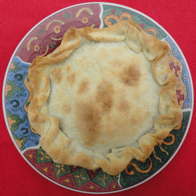 Warm your hands thoroughly with hot water: this pie is made by hand, and the only water that is used is the water with which you used to warm your hands (and not more than that).
