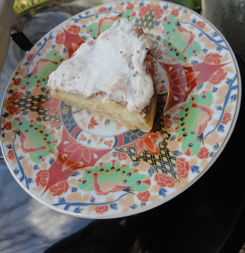 Remove when done and spread a layer of apricot jam on top. Make an icing with remaining egg whites, lemon juice, and enough confectioner's sugar to thicken to the consistency of butter.
