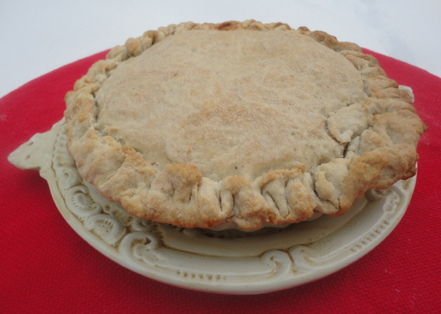 Brush a bit of lard on the surface of the top crust.
