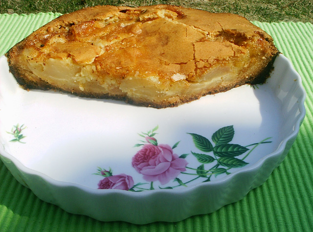 Notes This is a very popular tart recipe that can be found on numerous websites. The recipes on the websites are almost identical to each other. All of the recipes recommend using icing sugar to make the crust rather than conventional sugar which is a bit unusual, but so it is. The recipes also recommend that one uses a fluted flan tin (It has to be rather largish so it can contain the filling which is substantial enough). I myself didn't have a fluted flan tin so I used what I had (That explains the picture!). In any case, it's hard to say where the original recipe comes from, possibly this is a traditional recipe that was created in one of the Northern areas of Italy (The use of butter is a fair indication of this). Some food historians might suggest that this type of tart is basically a French recipe that Italians copied or adapted. Frankly, this recipe is rather difficult to do. The crust burns easily and the custard doesn't cook as evenly as it should (Mine didn't). However, the pear and almond combination makes for a very tasty tart. Somewhat magical. I suppose this is the reason why this particular recipe is so popular. There are other hundreds of pear tart recipes but those that don't include almonds are second rate (Well, that's my opinion).... Photo: Mary Melfi. |