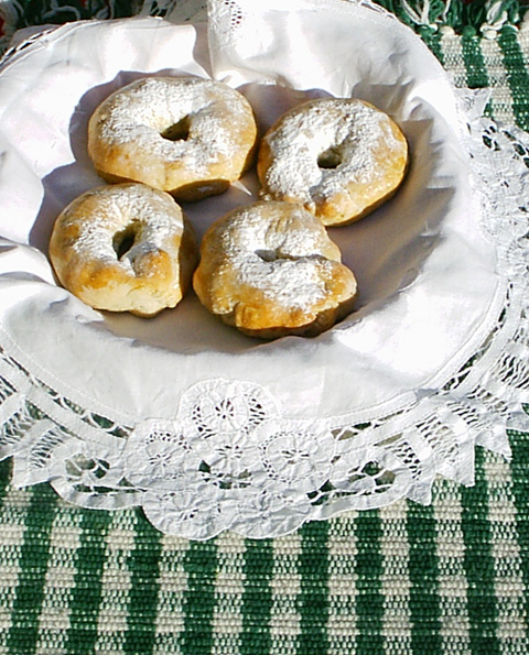 There are two totally different biscotti recipes that go by the name of "roccoco." One is an almond nugget style of biscotti, the other is a taralli style one. This recipe is for former. The spelling of the word "roccoco" differs in various recipes -- sometimes the word has two "Cs" in the middle and sometimes only one. The roccoco biscotti that are presently sold in Italian grocery shops in Montreal are spelled with two "Cs." Obviously, like with many other Italian recipes, there are numerous variations. Nonetheless, all the recipes include: ground almonds, flour, eggs, cinnamon, a pinch of nutmeg and the zest of one orange and lemon. However, some cooks use wine, others water in their recipes; some cooks use baking powder, others yeast. Some cooks use butter, others oil. Some cooks include candied orange and lemon, others do not. Also, the amount of sugar varies. Some cooks add very little, others a lot. Many of the cooks recommend that the roccoco biscotti be dusted with icing sugar prior to serving. On the other hand, the roccoco biscotti being sold in Montreal's grocery shops (They come packaged, factory-made) are not dusted with sugar. Most cooks do use nutmeg in their recipes, but I myself didn't because I simply don't like the taste of nutmeg. Still, roccoco biscotti are sometimes referred to as "spicy" so the addition of cinnamon and nutmeg might be necessary if you want to capture the traditional flavor. Admittedly, I use the touchy-feelie style of cooking, adding a bit of this and that, so often by the end of the cooking session, I haven't the foggiest idea of how much of this and that I used. Generally, the results are edible. In fact, the roccoco biscotti I made were quite delicious. Getting this recipe to work for you is worth the effort. The combination of almonds, lemon and orange zest in a taralli-style biscotti is absolutely wonderful. In fact, of all the taralli I have ever had the pleasure of eating, these roccoco are by far my favorite.