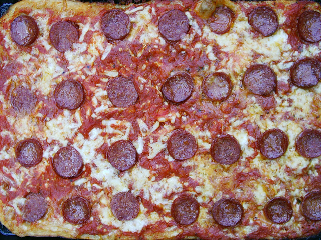 Few cooks (if any) made "all-dressed pizzas" in Italy prior to World War II. Not in Molise anyway. This style of pizza became popular in North America for obvious reasons (It tastes good, that's why!). Photo: by the contributor. |