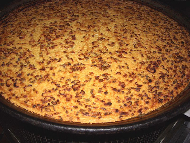 Notes The following text comes from Italian Wikipedia (Google Machine translation): Cecina Origins Place of origin Italy Regions Liguria Tuscany County of Nice Area of production Throughout the region Details Category dish Recognition PAT Sector Product Plant The farinata (in Genoa Faina), also called cake chickpeas or Cecina, is a very small pie, made with flour of chickpeas, water, salt and olive oil. It is baked in a wood oven, in a pan, with cooking and takes a lively golden color. Has very ancient roots: different recipes Latin and Greek report baked mashed vegetables, cooked in the oven. A legend says that he was born by chance in 1284, when Genoa defeated Pisa in the battle of Meloria. The galleys Genoese, laden with rowers prisoners found themselves involved in a storm. In the hustle and bustle of some oil barrels and sacks of chickpeas tumbled, salt water. Since supplies were those who were and there was not much to choose from, you retrieved the can and sailors were given bowls of mashed chickpeas and shapeless oil. In an attempt to make it less worse, some plates were left in the sun, she wiped the mixture into a kind of pancake. Returning to earth, the Genoese thought to improve the discovery of improvised cooking the puree in the oven. The result pleased, and for mocking the vanquished, was called the gold of Pisa. The same legend is told in Pisa , with some changes (the episode of the barrels seems to have happened on the Pisan galleys). Since the chickpeas fundamental part of the Pisan cuisine is likely to think that the Cecina has developed in this area and then be exported from the Pisan sailors during the era of Republican Preparation Mix one part of chickpea flour and 3 to 4 parts water in a bowl, add salt and stir vigorously to dissolve any lumps of flour (possibly crushing against the wall of the bowl with a spoon. Allow the mixture to stand for some hours (from two to 10 hours and even more), stirring occasionally to prevent the settling of the flour and dissolving always the lumps residues. Grease a baking tin plated copper with a thin layer of olive oil (one part oil to 5-10 parts of chickpeas) and pour the mixture from the center of the pan (the thickness should be at least 5 mm but less than 1 cm). "Breaking" the oil with a wooden spoon from the edges toward the center of the pan (up to bring forth oil stains scattered on the surface) and bake in the oven already hot. In the very first stage of cooking is important to turn the pan so as to maintain a uniform thickness (it is very difficult that the oven is completely level this avoids having thicker parts and undercooked and parts too thin and burned). You can enrich the porridge recipe before baking sprinkle with rosemary, artichokes and onions or half cooked with soft cheese, blue cheese, sausage or whitebait , fish typical of the Ligurian coast..... Photo: Wikipedia. |