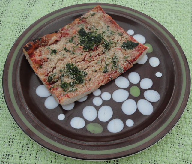 Notes The recipe in this entry was adapted from "The Art of Sicilian Cooking" by Anna Muffoletto (New York: Doubleday, 1971). The cookbook can be borrowed for free at the on-line library, www.openlibrary.org..... P.S. I tried this famous Sicilian pizza topping and found it to be quite good. The cookbook writer, Anna Muffoletto, indicates that Pizza Muffoletto's topping is traditionally made with onions, tomatoes, bread crumbs, sardines and parsley, but some home cooks opt to use anchovies instead of sardines, and grated cheese instead breadcrumbs. Photo: Mary Melfi. |