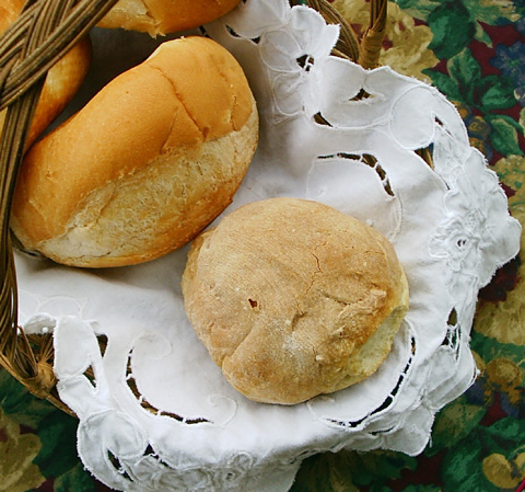 Notes The "panetelle," the small bread bun, seen on the right hand side of the photo [in the foreground] in this entry, was made by Mrs. Adelaide Palazzo. The first-generation immigration who grew up in Molise in the 1930s notes that in her home-town pizza and bread dough were made exactly the same way.... Apparently, the "traditional" shape of the panetelle in Molise was roundish rather than oval, and the crust was brownish rather than golden as is now popular (The bread buns on the left hand side of the photo were store- bought). Mrs. Adelaide Palazzo admits that she seems to be one of the few first-generation Italian-Canadians who still enjoys making bread buns. Of course, she does make use of her daughter-in-law's Kitchen Aid. Mrs. Adelaide Palazzo mentioned that prior to World War II "panetelle" were often made on feast days and were brought to church to be blessed and/or given away to the poor. P.S. Prior to World War II in some parts of Molise (e.g. Casacalenda), it was customary to add a bit of boiled potatoes to the dough, but in Guardialfiera this was frowned upon. Apparently, in Guardialfiera, adding boiled potatoes to the dough was perceived as being a desperate act of poor people (Those who did not have enough wheat to make bread the proper way). However, in other towns (e.g. Casacalenda) adding potatoes to the dough was thought of as a good way of extending the shelf-life of the bread, and making it tastier! So, while most towns in Molise made very similar types of bread, it seems whether or not cooks added boiled potatoes to the dough depended on the local tradition of any given town or village. P.S. In Guardialfiera, a town, about 1/8th the size of Casacalenda, local households were allowed to build wood-burning ovens in their back yards, unlike in Casacalenda, where cooks had no choice but to use the town's "communal" wood burning commercial ovens. Why those in Guardialfiera had the option to use home ovens, and those in Casacalenda did not, is a big mystery.... Photo: Mary Melfi. |