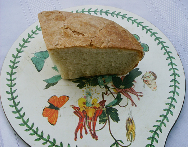 Notes The "panelle di pane" in the photo was made by Mrs. Adelaide Palazzo. The first-generation immigrant who grew up in Guardialfiera in the 1930s notes that pizza and bread dough at that time were made exactly the same way. Their one difference was their shape.... Apparently, prior to World War II in some parts of Molise (e.g. Casacalenda), it was customary to add a bit of boiled potatoes to the dough, but in Guardialfiera this addition was frowned upon. Apparently, in Guardialfiera, adding boiled potatoes to the dough was thought of as being a desperate act of poor people (Those who did not have enough wheat to make bread the proper way). However, in other towns (e.g. Casacalenda) adding potatoes to the dough was perceived as a way of extending the shelf-life of the bread, and making it tastier! So, while most people in the region of Molise made very similar types of bread, it seems whether or not cooks added boiled potatoes to the dough depended on the local tradition of any given town or village. Mrs. Adelaide Palazzo believes that her town made better bread than any other town in Molise because the fields around Guardialfiera were more fertile and therefore grew the best wheat in the region. However, this attitude is not necessarily shared by those who come from other areas of Molise. In fact, Mrs. Giovanna Melfi (Mary Melfi's mother), a native of Casacalenda, highly disputes the idea that Guardialfiera grew the best wheat in the region and had the best-tasting bread. In any case, both Mrs. Melfi and Mrs. Palazzo do agree on the more essential point -- bread made from wheat was [and is] superior to bread or pizza made from corn. Both women (Why the whole of Molise!) have a strong prejudice against breads or pizzas made with corn. One can safely say that the majority of individuals who grew up in Molise in the 1930s think of "pizza di grandino" as the food "of the poor." Back then one would eat "pizza di grandino," corn pizza, or polenta out of necessity, and never out of choice. Apparently, prior to World War II the poorest of the poor often reserved "white" bread or "panelle Molisana" for Sundays and other special occasions. Why even pasta (which also required wheat) was reserved for Sundays and special occasions. Because Mrs. Palazzo grew up in a relatively well-to-do household her family made "panelle Molisana" for everyday consumption. The only time her family didn't have white bread on hand was during World War II when the Germans stole their bags of flour. However, in poorer families (like at Mrs. Melfi's) pizza di grandino was served day in and day out -- sometimes even on Sundays! Nowadays, the majority of Italian North Americans don't think of "panelle Molisana" as a specialty bread. It's just a loaf of country-style Italian bread (Like, it's no big deal). Few Italian-North Americans appreciate how back in the old country anything made with wheat (including pasta) was revered. Back then, in poorer families, the amount of wheat used to make pasta or bread was often rationed. For everyday consumption cornmeal had to be made use of, like it or not. Second generation Italian-North Americans will often go to the ends of the earth (Or, at least across town) to purchase the best tasting Italian bread they can get their hands on, but few will make it at home (Too much trouble!).... Photo: Mary Melfi. |